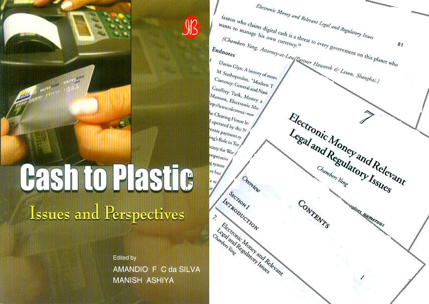 杨春宝律师撰写的法律论文Electronic Money and Relevant Legal and Regulatory Issues(《电子货币及相关法律、监管问题》)描述了使用电子货币支付的法律涵义,并通过对英国电子货币法律以及PayPal,或者对任何拥有有效电子帐户的用户的电子货币转帐服务等进行详细讨论,研究了电子货币的规制框架。该篇论文最近入选印度ICFAI大学出版社出版的“Cash to Plastic: Issues and Perspectives”一书中。